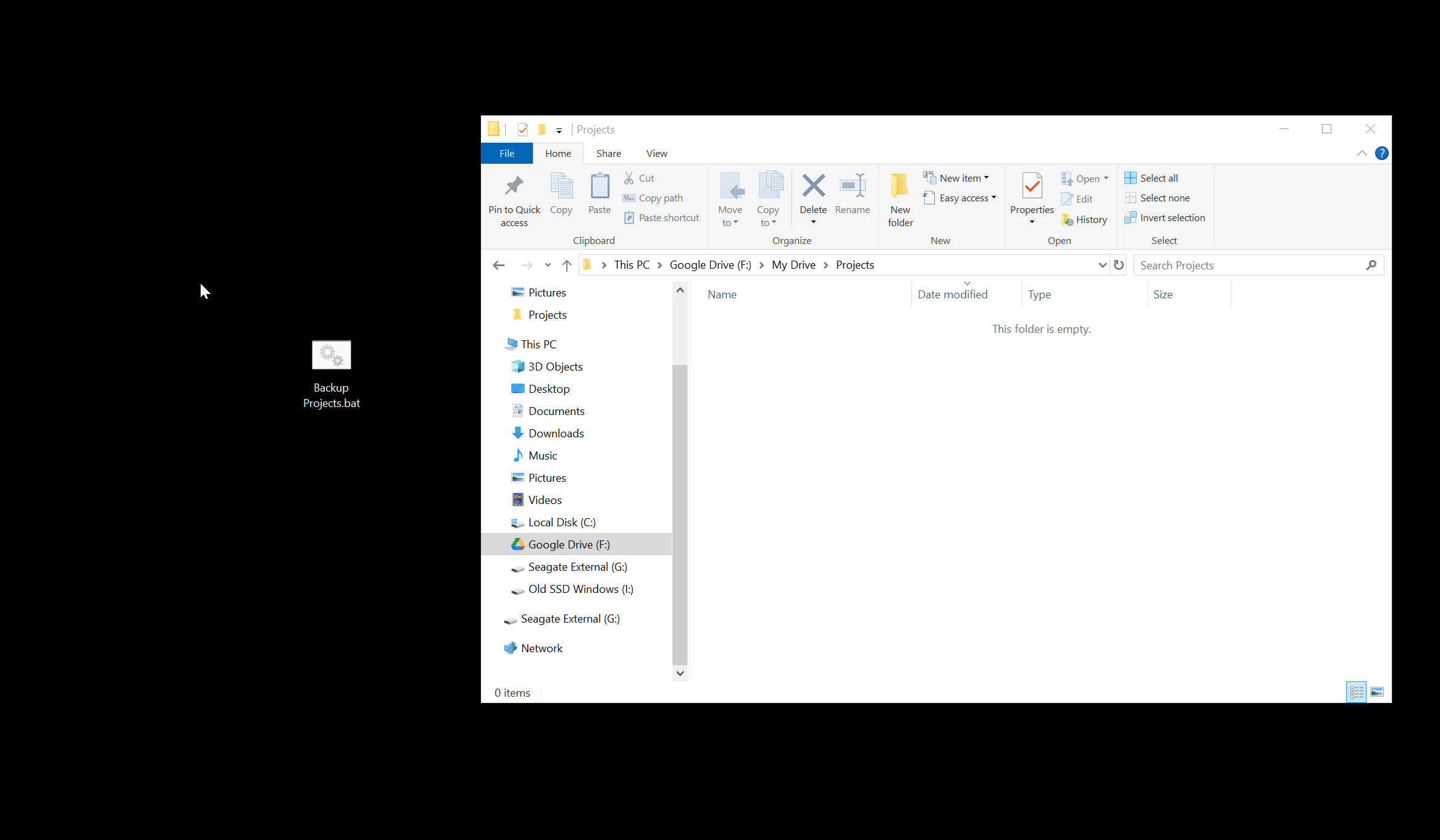 Here’s an example that I have set up. I am copying my FL Studio 24 Projects folder to a folder that I created called ‘Projects’ on my Google (F:) Drive.